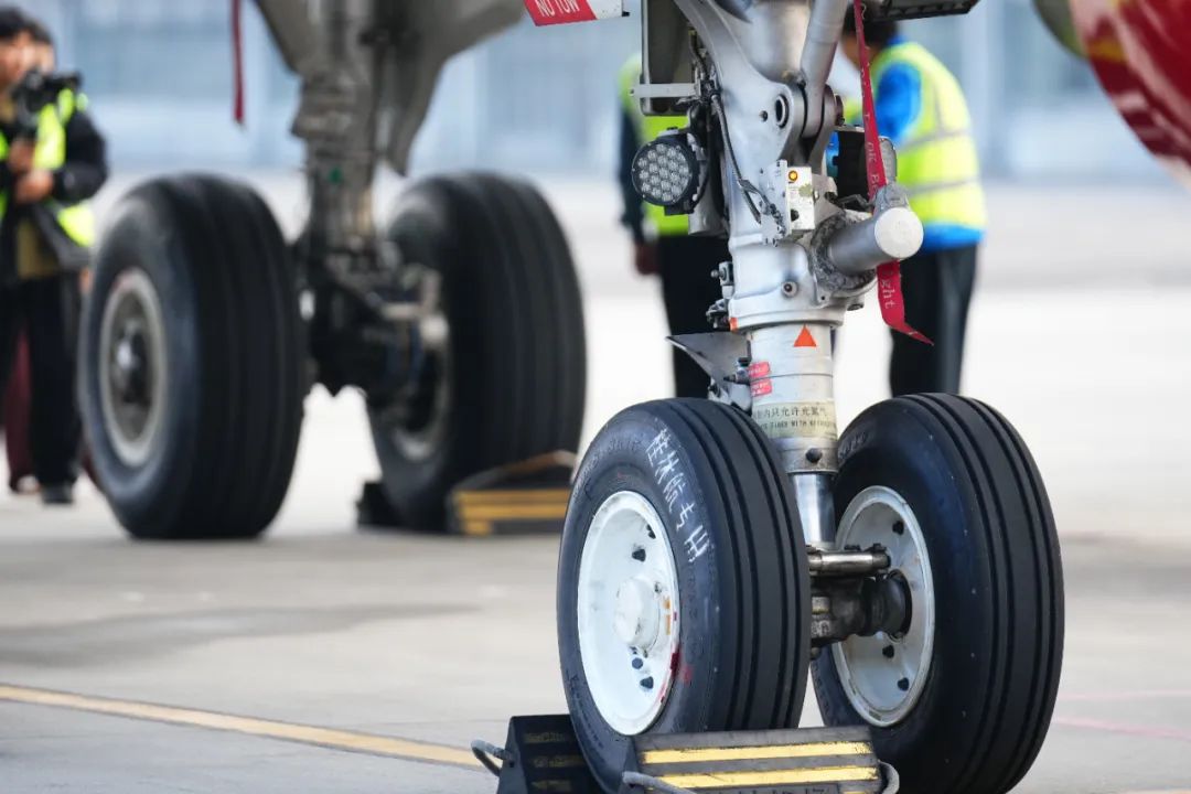 据试飞组负责人介绍,这次试飞装配的轮胎是基于热力耦合构型优化、关键材料模量匹配等创新技术研发的高性能民用航空子午线轮胎,具备完全自主知识产权,并通过了适航标准规定的苛刻试验考核,技术性能达到国际标准要求,已于2024年10月获颁中国民航局CTSOA证书。