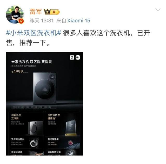 其实网友许愿成真的事情并不少见。此前有用户在雷军抖音评论区手绘了一张图,说想要双区洗衣机,要一大一小两个分区的洗衣机,不用占很大体积。10月29日,小米15系列新品发布会上,小米发布了新一代双区洗衣机。