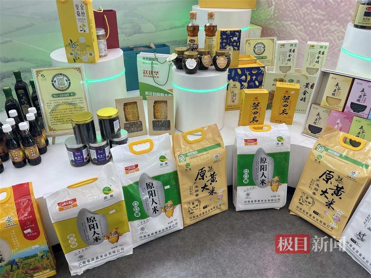 展厅内陈列着印有“原阳大米”商标的产品