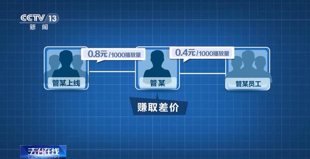警方了解到,管某等人会将审核通过的这些造谣视频发布在多个视频平台上进行推广,管某与其上线以每1000播放量0.8元的价格达成协议,之后又以每1000播放量0.4元的价格给员工结算提成,自己作为中间商赚取差价。