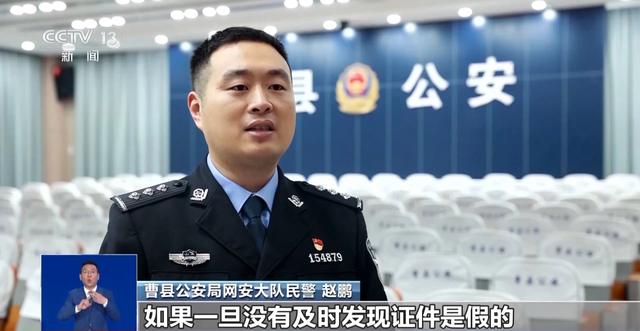 曹县公安局网安大队民警 赵鹏:如果一旦没有及时发现“证件”是假的,这些假证被未经过专业培训的工人拿到手,他们直接上了那些大型机械进行作业,意外事故就难免会发生,后果是非常严重的。