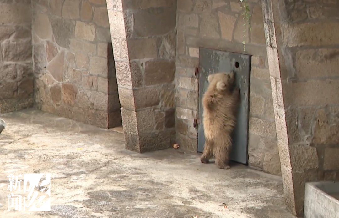 十个月大的军军正是好动的年纪,每天都在熊山东山的室外活动场绕圈跑。军军对外面的一切都充满好奇,假山上的小石头、藤蔓树枝、水池里的水等等。军军探索着各种新鲜事物,什么都要咬一口、推一下、闻一闻、拔一拔。