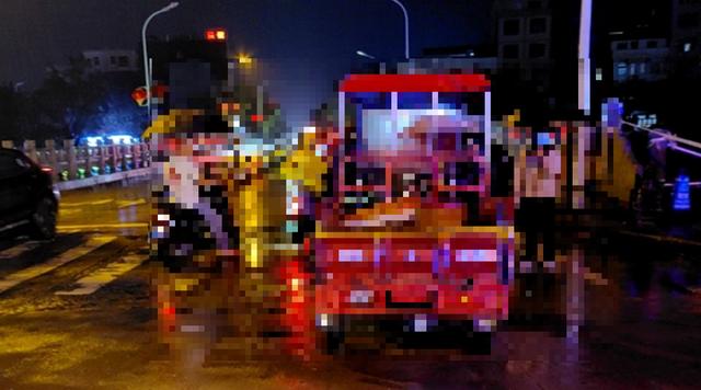 经初步调查:正三轮电动车驾驶人存在通过人行横道时未礼让行人、驾驶未悬挂号牌车辆上道路行驶的交通违法行为,目前该案件还在进一步调查当中。