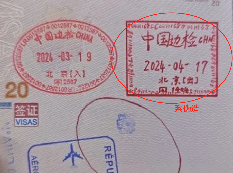 事情原委是这样的,近日,一名中国旅客在护照上自行手绘一枚验讫章,被北京边检总站北京机场边检站移民管理警察执行勤务时发现,随即该旅客被拒绝出境。