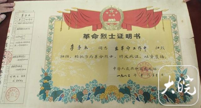 记者看到,有李务本的《回忆录》手稿、书画作品和相关证件材料,整理收集得非常用心。其中,有一张《革命烈士证明书》原件。