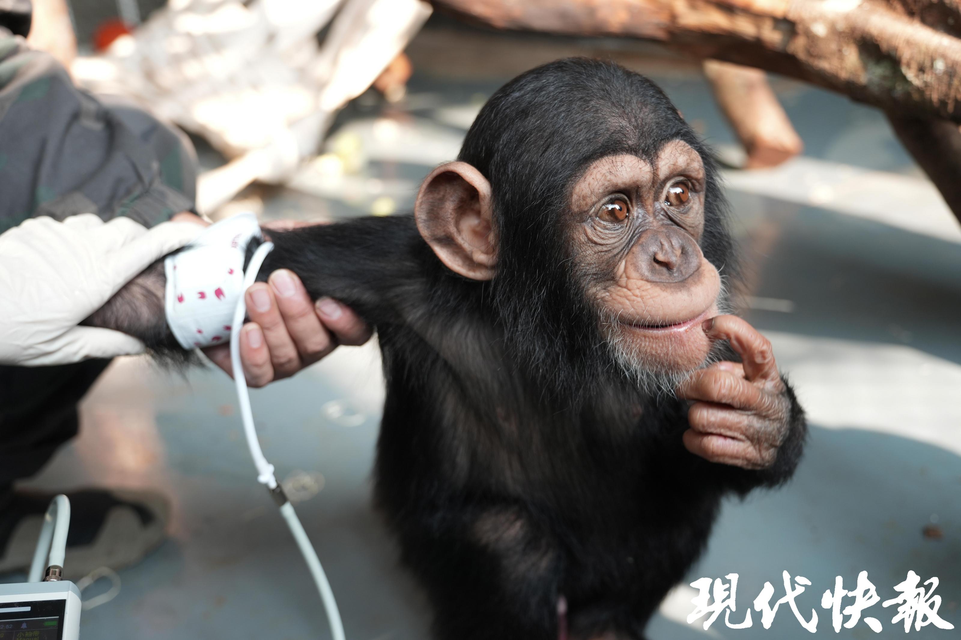 聪明的黑猩猩体检很配合。兽医将特制的血压测量仪轻裹在其肢体上,密切关注仪器数据每一次跳动,而它对血压仪也是相当淡定。此外,兽医还用听诊器仔细聆听其心跳和呼吸声,不放过任何一丝异常,这些数据都将为黑猩猩的健康状况描绘出清晰的轮廓。