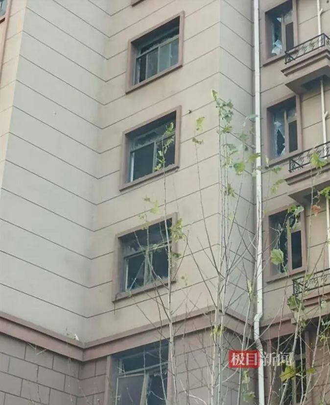 现场视频显示,该楼栋的第一至第七层窗玻璃都有明显破碎。还有视频显示,此处有明显白雾升空。