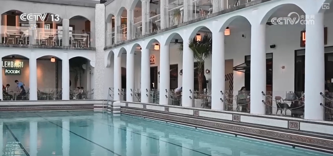 不仅是国际品牌,“首发地标”也在成为培育本土品牌的新场所。在上生·新所,多栋有百年历史的建筑如今成了新消费场所。在“网红泳池”边喝杯咖啡,在百年建筑里看一本书,正成为新的潮流。这两天,一场“复古市集”在这里拉开帷幕,吸引了不少游客。