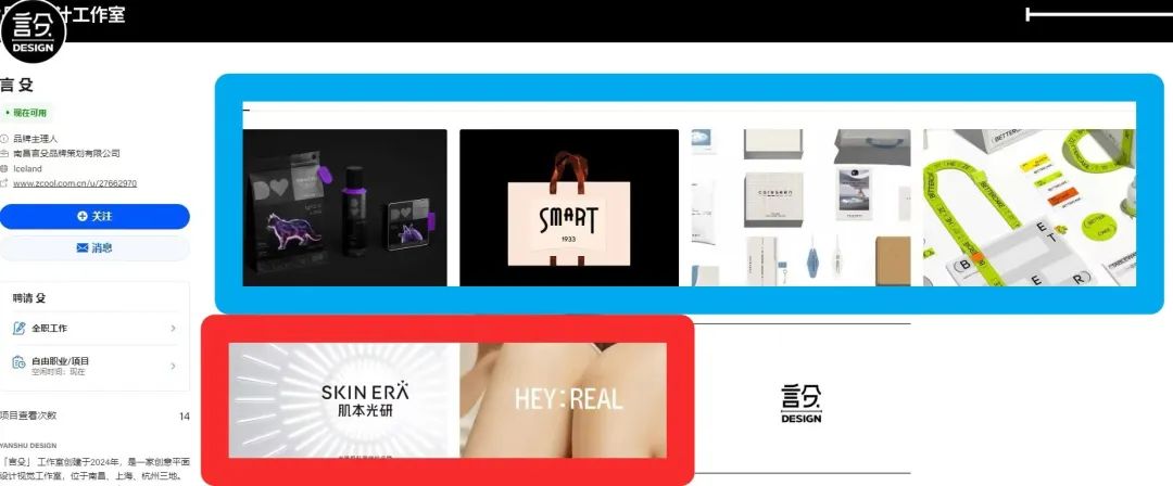 11月20日,王越发现,他的作品被人公布在设计行业内的两个知名网站,发布者为南昌言殳品牌策划有限公司(下称“南昌言殳”)。