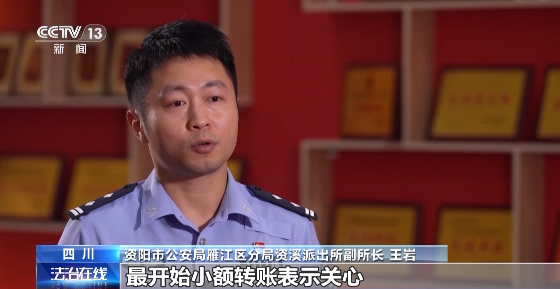 资阳市公安局雁江区分局资溪派出所副所长 王岩:他游戏里边有时候要沟通,他就开麦,开麦之后,就有人告诉他,你的声音好好听,他就这个样子,他就发现了他有这个特点,就他的声音能够模仿到女声。
