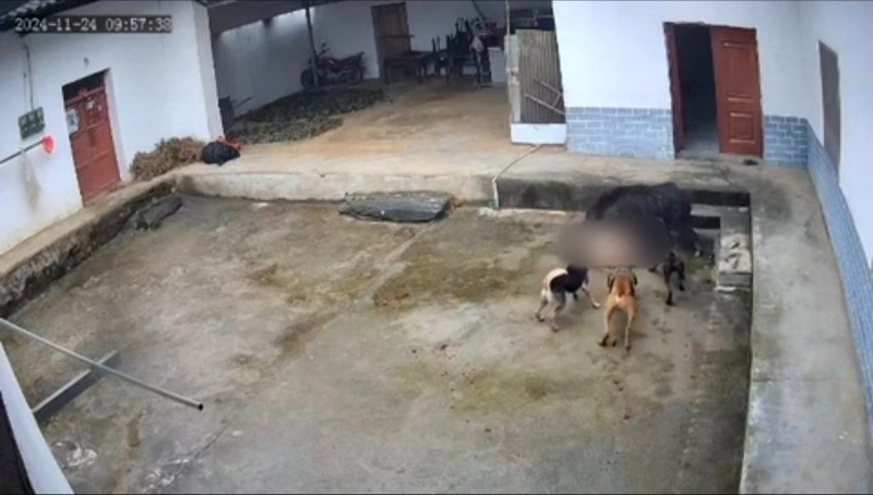 大皖新闻记者从监控视频看到,11月24日上午,一只野猪闯入农户院子中。一名老人从屋内出来查看情况。随后,野猪见到老人后,突然对老人发动攻击,撕咬拖拽老人,老人从台阶上摔下,地面及身上有大量血迹。