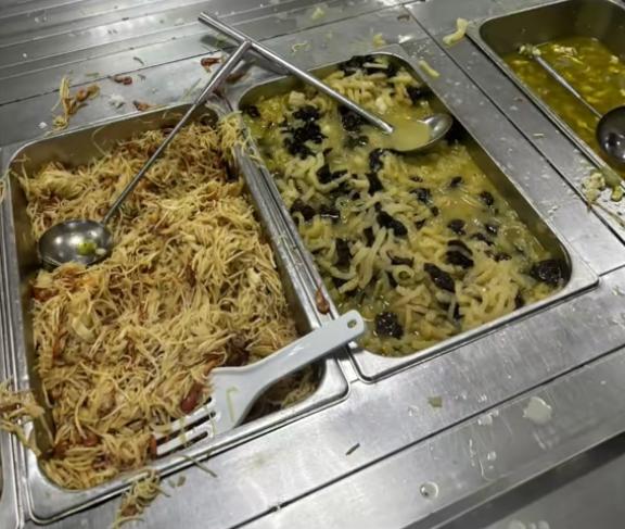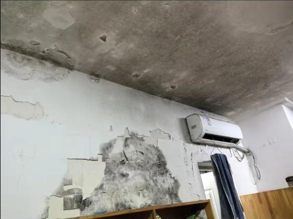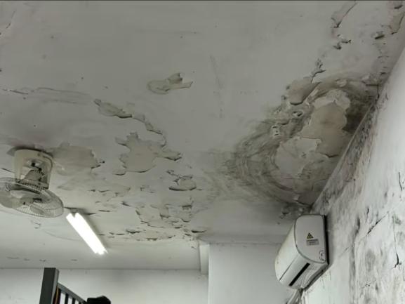 从网友发布的视频显示,该校一学生宿舍发生了较严重的墙面发霉情况,天花板也有墙块掉落痕迹。而从该网友发布的食堂饭菜视频中可以看到,饭菜装盘较乱,出现了鸡蛋发霉的情况。