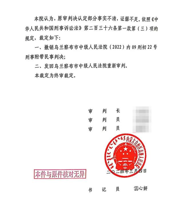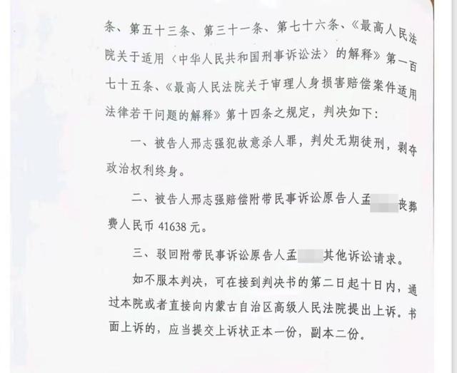 2023年8月25日,乌兰察布市中级人民法院一审判决邢志强犯故意杀人罪,判处无期徒刑。邢志强认为自己无罪,属正当防卫,提出上诉。2024年3月4日,内蒙古自治区高级人民法院以“部分证据不足”,裁定该案发回重审。