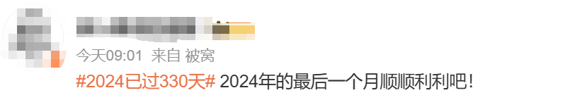 有人在线许愿,希望最后一个月能情绪稳定、睡个好觉,给2024画上圆满句号。“每天精神状态都很稳定,希望后面的这几十天也一样吧”“2024年的最后一个月顺顺利利吧!”