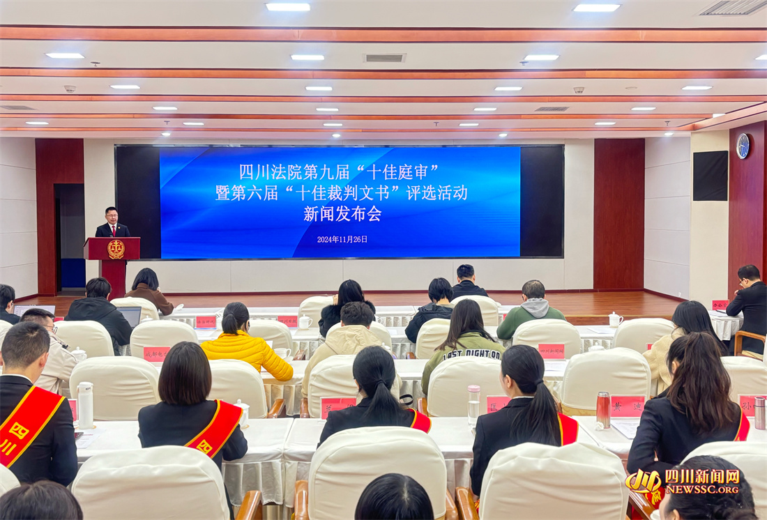 11月26日,第九届“十佳庭审”暨第六届“十佳裁判文书”评选活动新闻发布会在成都举行。现场公布“双十佳”的评选结果。