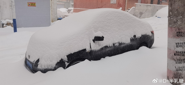 △黑龙江鹤岗部分地区积雪已快淹没汽车