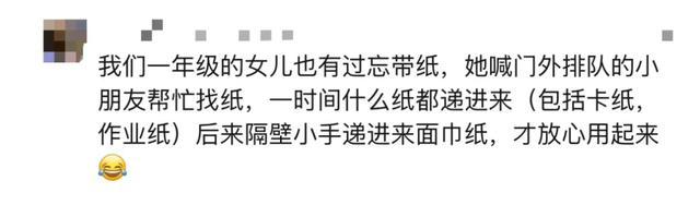 而关于学校厕所没有厕纸一事,前几天我们报道了《7岁女儿忘带厕纸!听完这段“自救”经历,杭州妈妈裂开了》。原来是一年级的女儿在上厕所时,由于学校厕所不提供厕纸,当时厕所内又没有人,忘带纸巾的她竟然“灵机一动”,从垃圾桶挑了一张纸擦屁股……
