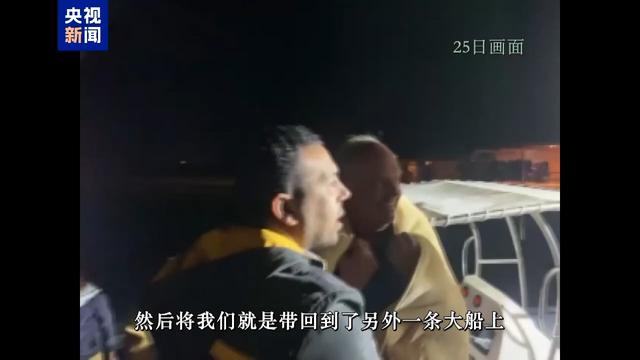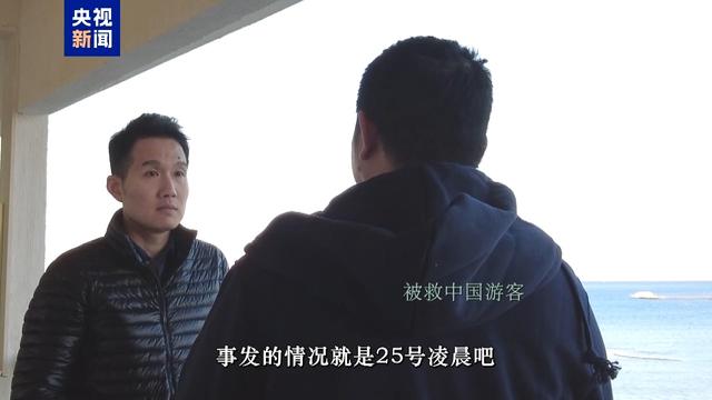 获救中国游客:当天应该是下午两点钟左右,一艘搜救的小艇找到我们,将我们带到了另外一艘大船上,大船上的人员,船上的员工,还有客人,他们把自己的衣服给我们,然后也会帮助我们去联系自己的大使馆,自己的一些亲人。