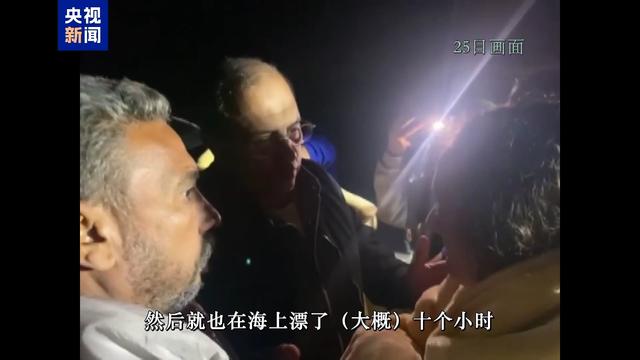 获救中国游客:还是有风浪的,风也挺大。后来坐上一艘船上的紧急救生筏,在海上漂了大概十个小时。