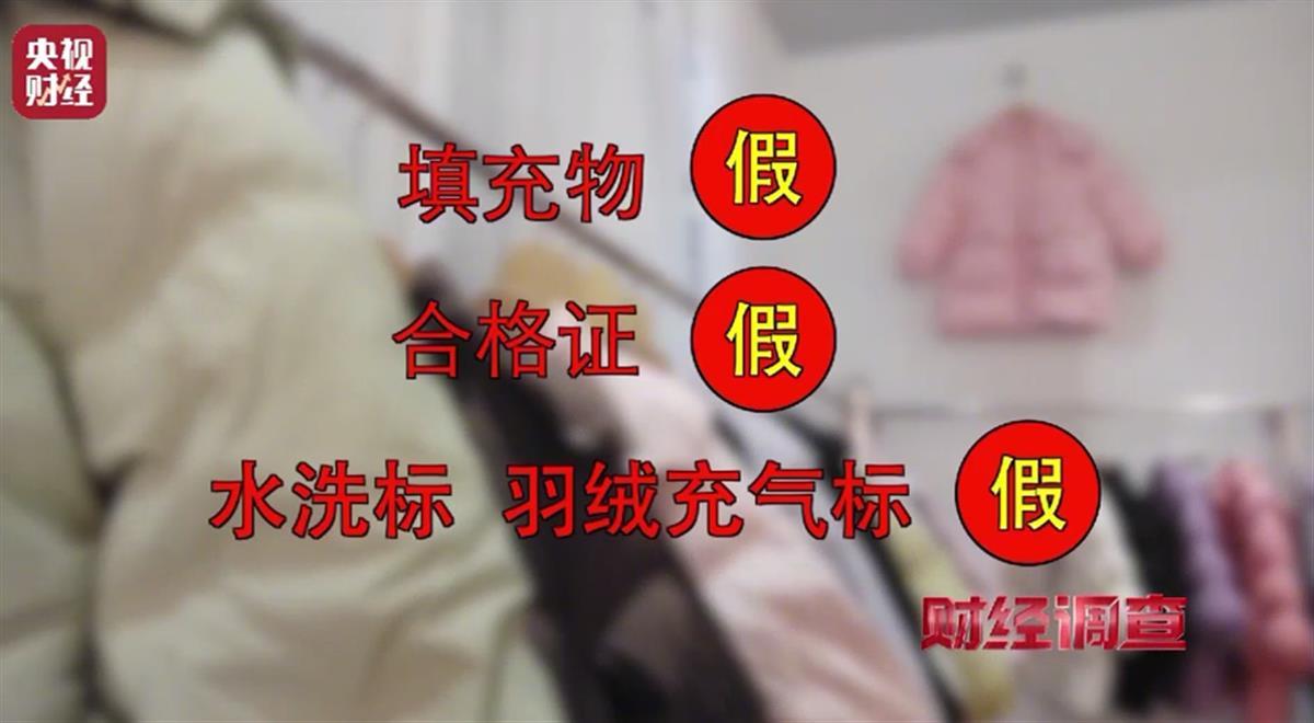 11月24日,据央视财经报道,在九江庐山市横塘镇红星羽绒电商创业园内,聚集了上百家羽绒服装配套企业。当记者询问儿童羽绒服的销量、价格、质量时,多位商家表示羽绒服内的填充物是不达标的飞丝,其检测无法达到国家标准。更有商家直言其销售的儿童羽绒服不但填充物是假的,合格证是假的,水洗标及羽绒充气标是假的,甚至羽绒服的检测检验报告也是伪造的。“这个检测报告,大家都是买的通版的,到那个辅料店里面。”一位童装店工作人员说。