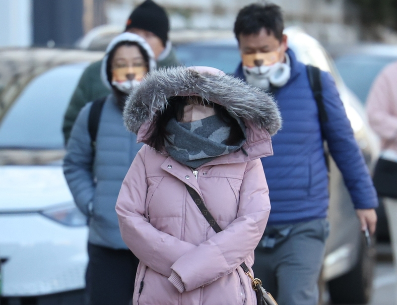 11月26日,北京市朝阳区樱花园东街,市民“全副武装”应对大风。新京报记者王贵彬摄