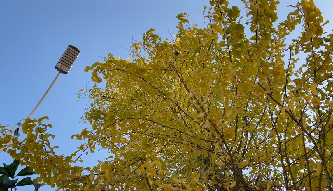 黄灿灿的扇叶在阳光的映衬下熠熠生辉(唐芳艳供图)