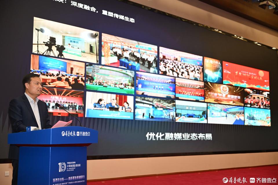 11月28日,“深改在山东——高质量发展调研行”暨“智驱未来 拥抱变革”齐鲁壹点十周年战略发布活动在济南举行, 大众报业集团社委,齐鲁晚报•齐鲁壹点党总支书记、总经理,齐鲁壹点传媒董事长魏传强发布齐鲁壹点十周年发展报告。