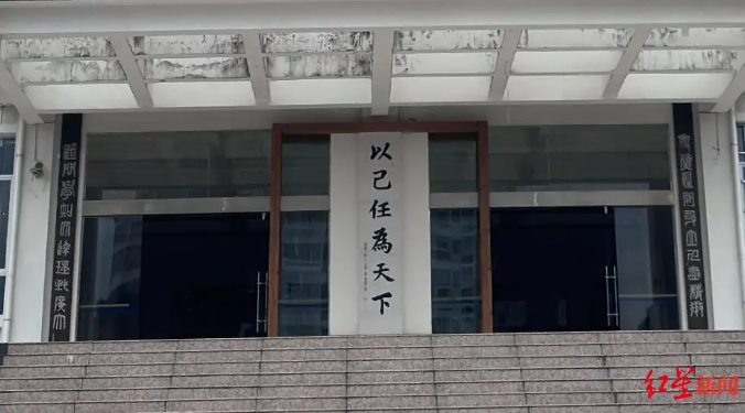 副校长涂兴洪告诉红星新闻记者,在与学生互动方面,富宁一中其实有很好的经验:该校高中部“逸夫楼”大门前的文化引领标语“以己任为天下”,就是广泛收集了学生意见最终采用的,书写者也是该校学生,“校园内,还有大量作品、匾额、题字等,均为学生所书写。”