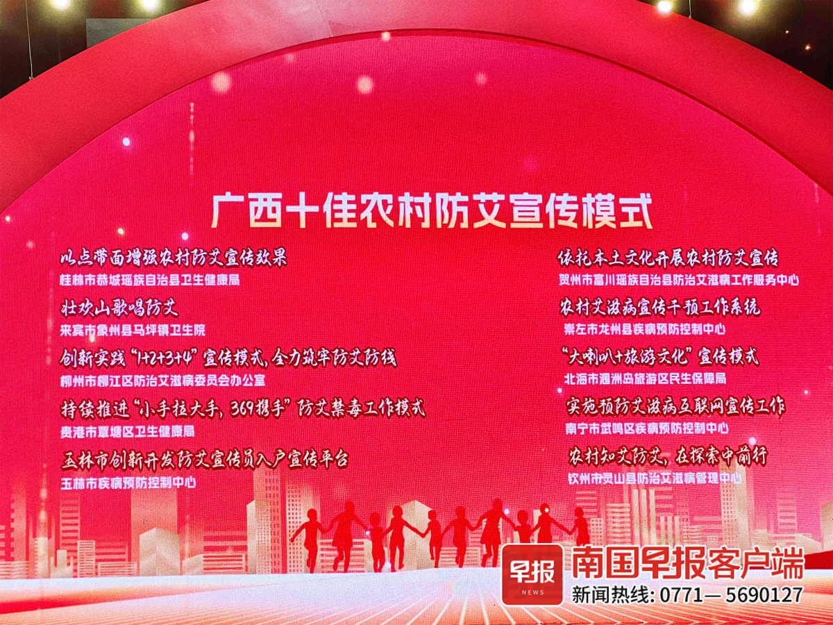 据悉,今年7月,自治区防艾委办在全区范围内开展了“广西农村防艾宣传优秀模式”遴选活动。经各市遴选推荐、自治区组织专家评审,贺州市富川瑶族自治县推荐的“依托本土文化开展农村防艾宣传”、桂林市恭城瑶族自治县推荐的“以点带面增强农村防艾宣传效果”等10个案例获评为“广西十佳农村防艾宣传优秀模式”。