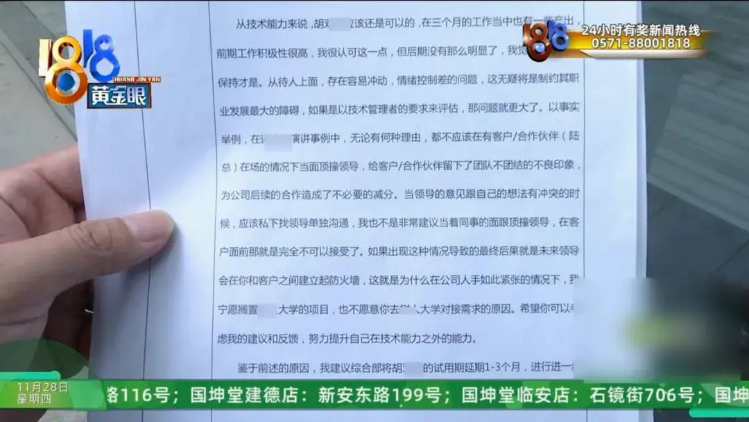 胡先生:对 ,他直接写了,那我没有介意,你写可以的。你想想看,我连转正延迟,我都可以接受,对不对?那为什么在后面有一个问责会议,我没有接受呢?