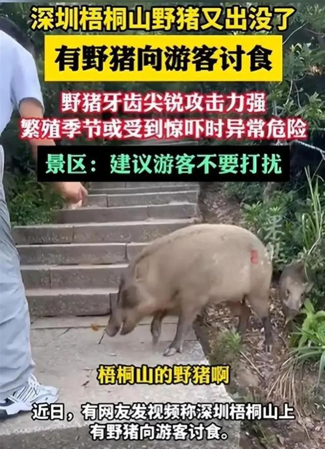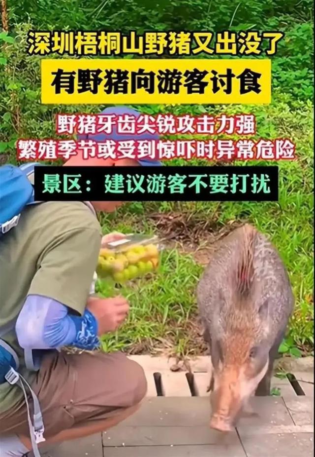 这样的场景,在梧桐山景区已经不是第一次出现。社交媒体上,关于“梧桐山野猪讨食”的视频和图片屡见不鲜,甚至还有一些游客将投喂野猪当作一种“乐趣”,全然不顾可能带来的风险。