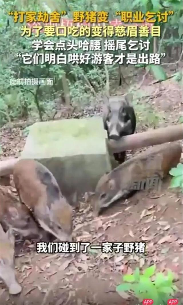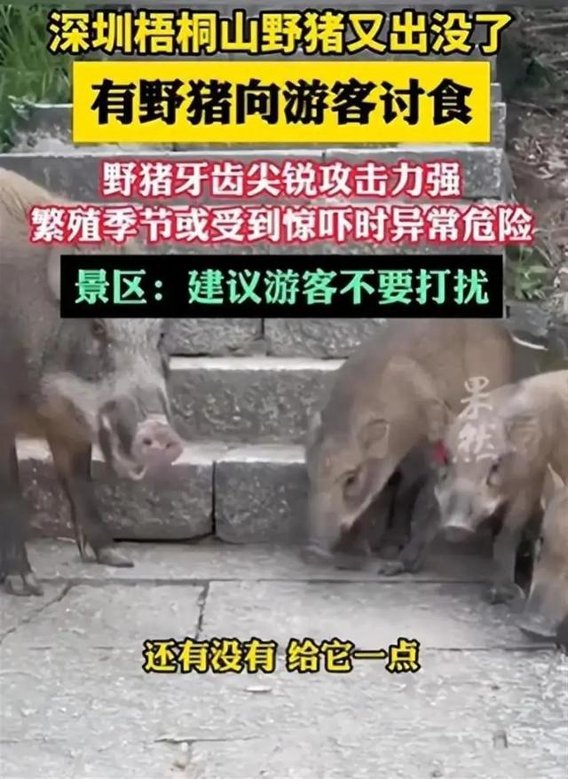 据拍摄者吴先生介绍,深圳这里的野猪拖家带口乞讨为生。视频中有游客惊呼,我们碰到一家子野猪了,有人在向野猪投喂食物。