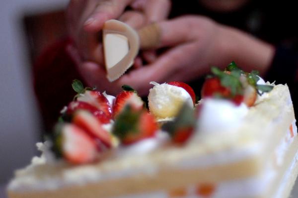 西西生日时,小雪和西西一起切蛋糕。澎湃新闻资料