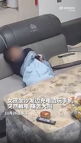 近日,浙江一女孩在客厅边充电边玩手机,突然触电。她一下瘫倒在沙发上,痛苦地叫了起来。幸好孩子的爷爷就在旁边,第一时间把手机电源线扯了下来。事后,孩子的父母表示,女孩的手脚都被电肿。