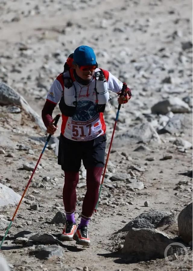 李帅鹏所说的徒步阶段,指的是在5月29日比赛之前,参赛选手由卢卡拉机场走到珠峰南坡大本营的EBC徒步路线,一般要7-10天行程。“一般选手会在5月27日抵达大本营,住两天适应高海拔。2023年我参赛的时候,就看到两名选手因严重高反被送下山,所以对于非专业选手来说,能够坚持到参赛已经是胜利。”他补充道。