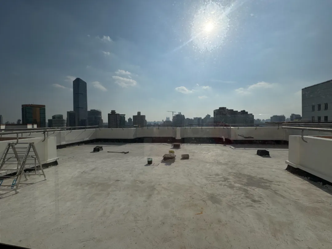 四和花园是建于1995年的老小区,24层的塔楼,两梯十户,出入楼道昏暗。在顶楼,有四块不同朝向的平顶,平时除了零星的通风口,主要是居民晾晒衣物和锻炼的地方。