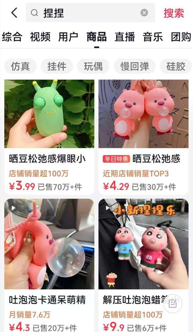 记者注意到,在线上平台,“捏捏乐”销售火爆。在某短视频平台上,多家销售“捏捏乐”的电商销售量高达几万件,有的甚至超过10万件。线下实体店,“捏捏乐”也吸引了许多孩子的目光。海淀区文慧园路附近的一家文具店,大量“捏捏乐”摆放在店门口最醒目的位置;北三环中路辅路附近一家文具礼品店,解压类玩具也被集中摆放,放学时间,不时有学生进店选购商品,大多数孩子路过都会上手捏一下。