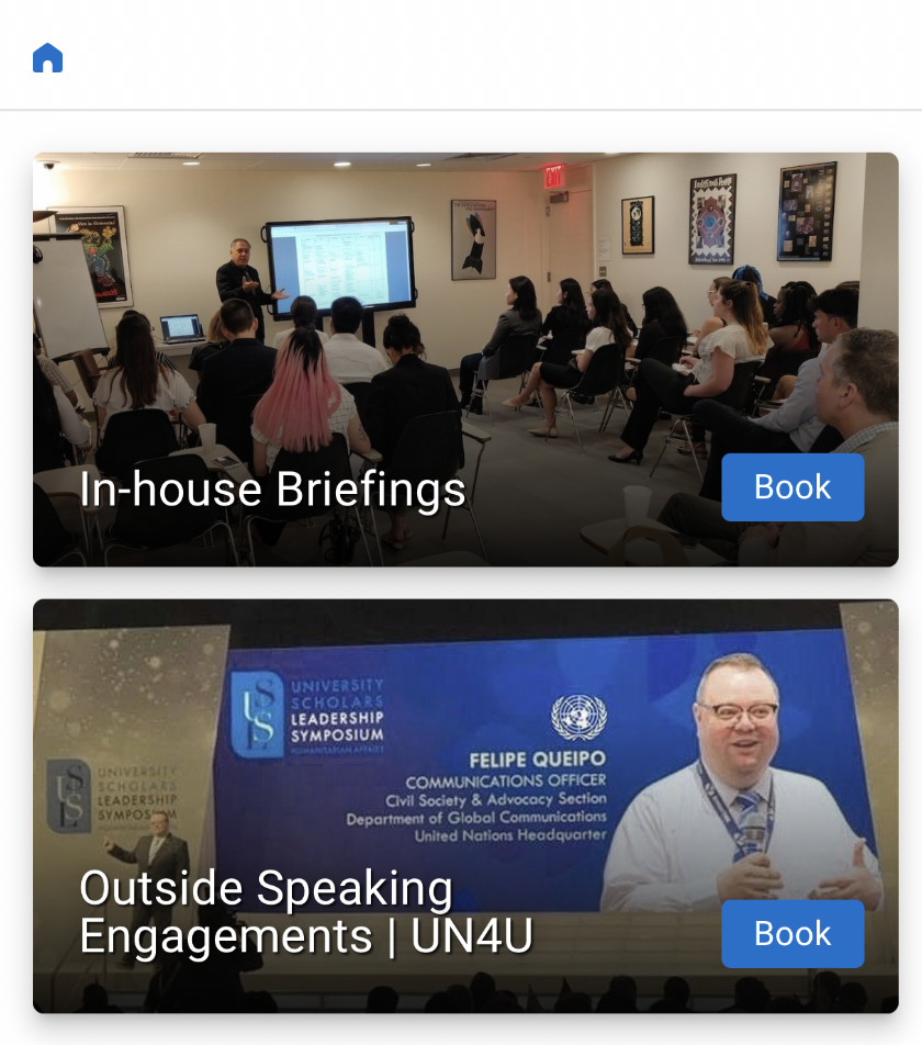 当然,仅游览参观并不能满足网红们建立精英人设的目的。在此之上,联合国还提供更进一步的服务,只要花几百美金就能参与内部演讲、外部演讲、线上参会等活动。据官方介绍,此类活动适合各类群体,包括学生、教育工作者、商界领袖等。