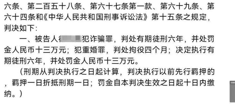 诈骗、重婚两罪获刑6年