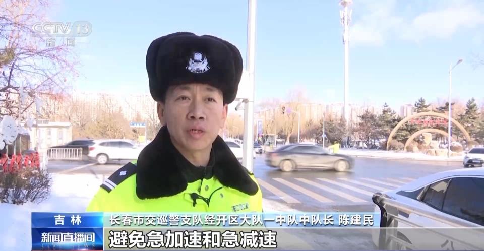 长春市交巡警支队经开区大队一中队中队长 陈建民:在雪天行车时,要保持低速行驶,避免急加速和急减速。与前车保持足够的安全距离,以防止发生追尾事故。刹车要灵活运用,避免猛踩刹车,建议用点刹。转弯时要缓慢打方向盘,不要猛打方向,以防止车辆侧滑或翻车。