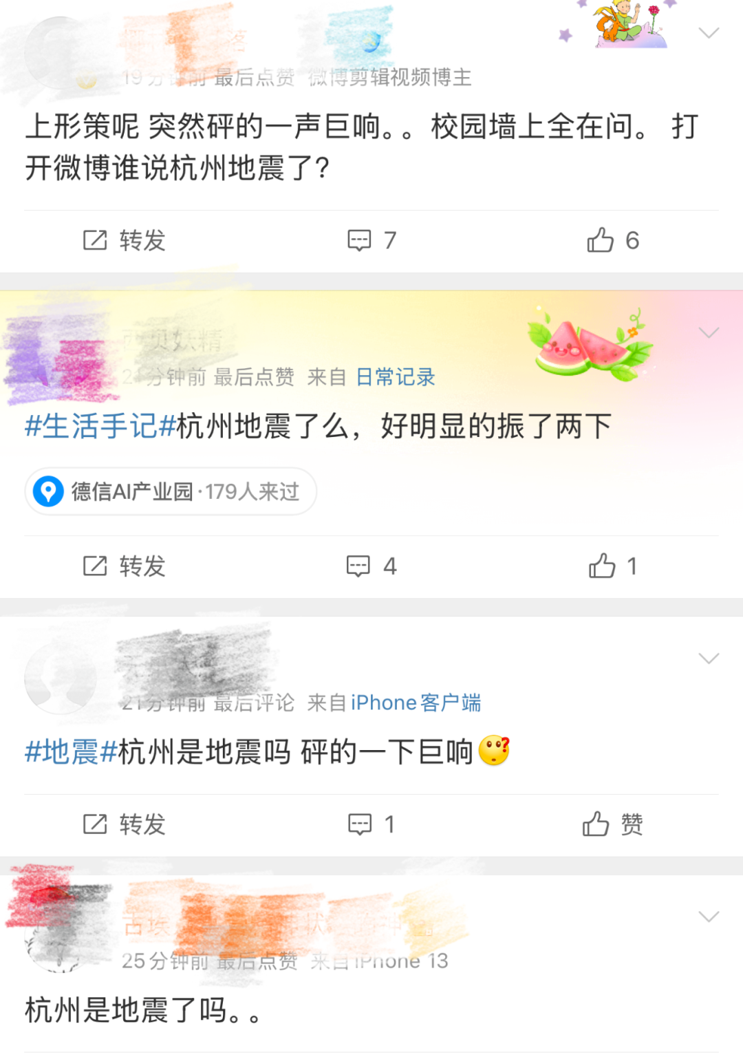 刚刚,微博上不少网友询问杭州是否发生了地震。对此,记者第一时间采访了浙江省地震局,对方表示网友反馈的时间段内,没有监测到任何地震信息,对于微博网友反馈的情况,他们将关注了解。