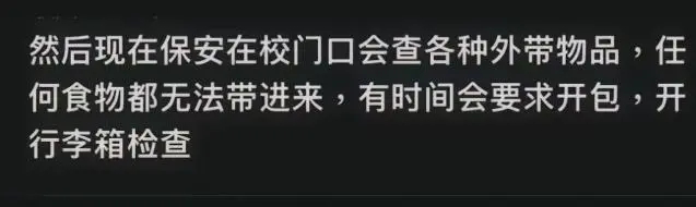 那学校是否可以通过安检机来查验学生包裹呢?这位工作人员表示,目前学校还没有购买安检机,所以只能采用人工方式,而且他们学院对学生包裹查验也只是这段时间才开始的。“这是当地公安要求的,因为我们这个地方位置比较偏,以防万一,有可能牵扯到隐私的问题,这方面我们也会注意,我们会安排人员让大家不要去围观。”