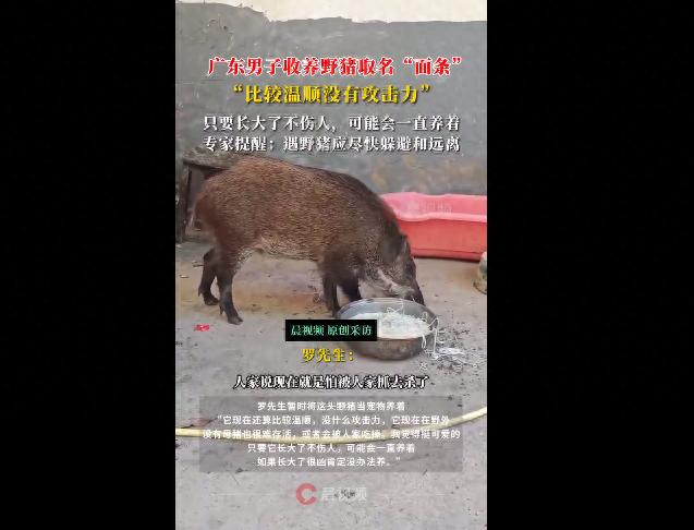 罗先生是梅州人,目前在广州工作,“我房子租在郊区,后面有山,以前也没见过野猪,不知道是哪里来的。”对于野猪伤人的新闻,罗先生表示也有关注,“这个野猪比较小,也没有长獠牙,我拿东西给它吃,它顾着吃,我摸它也没反应,也比较温顺。”罗先生介绍,“它吃饱了之后,我摸它它会躲,我坐在那里它会过来用嘴拱我,不过它没有长獠牙,也不痛。”