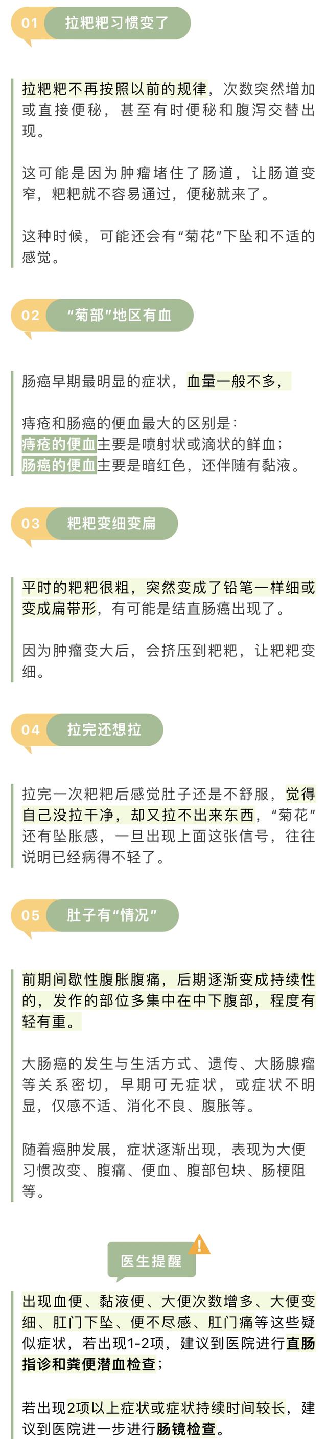 杭州市第一人民医院肿瘤内科主任郑松表示,超过80%的直肠癌最初被自己当成痔疮。很多患者出现便血都以为是痔疮,甚至半年都不去医院检查,直到出现腹部包块、肠梗阻等严重症状才来就诊,而此时往往已是中晚期。