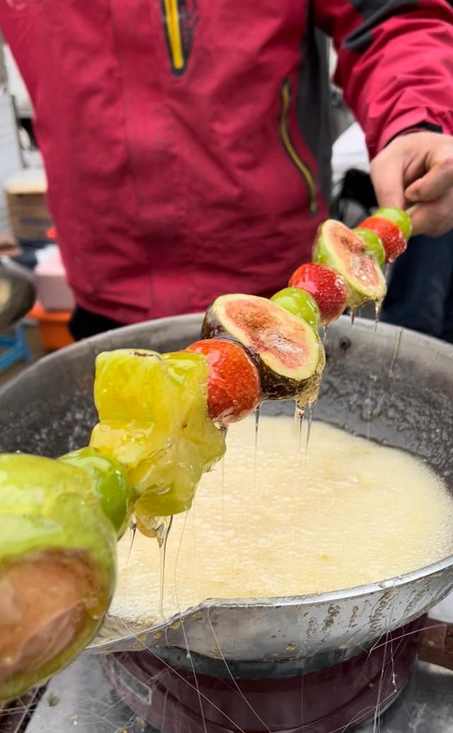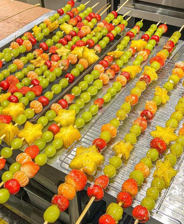 除了经典的山楂口味,混合了草莓、番石榴、杨桃、无花果、阳光玫瑰的一米大串也很受欢迎,价格为78元。