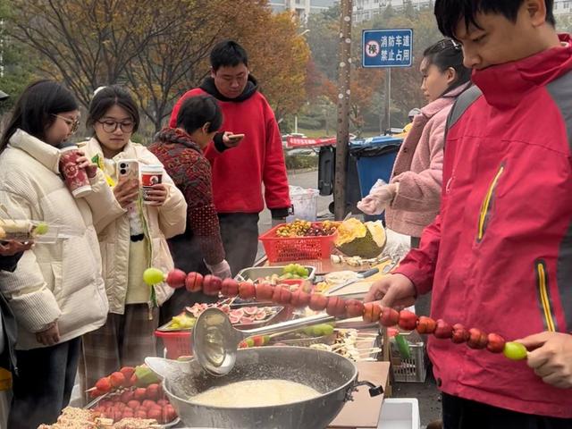 “老板,有一米的糖葫芦吗?”“有!”“全山楂的多少钱?”“28元!”在位于步步高梅溪湖新天地附近的“光师傅糖葫芦”小摊前,围满了消费者,一个年轻女孩正在购买一米长的山楂糖葫芦。