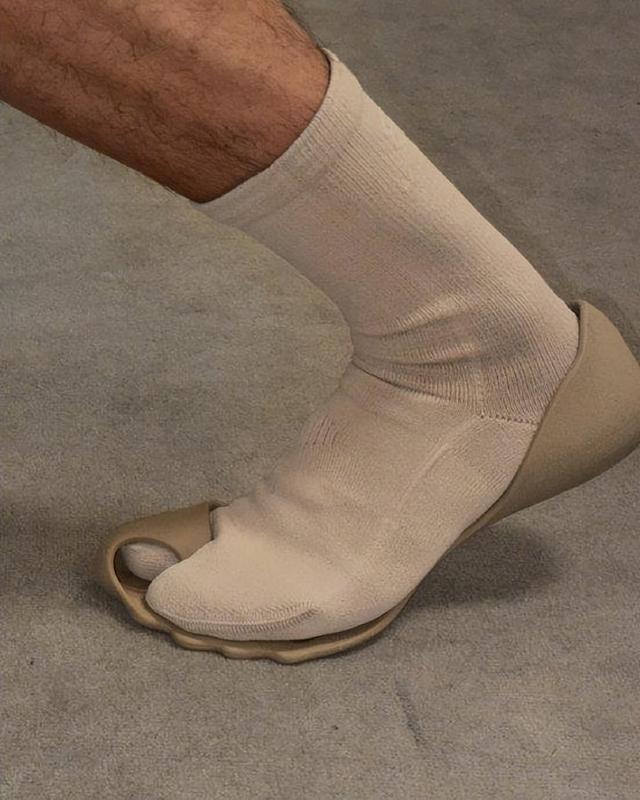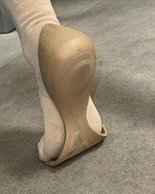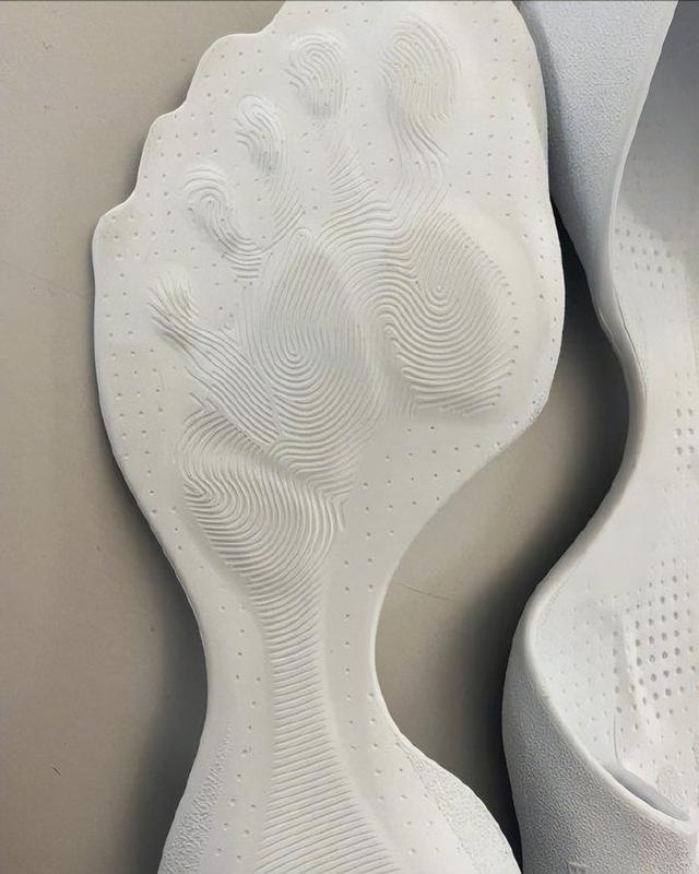 一次尝试中发现,脚趾纹路也做进大底的细节里的话会增加很多真实度,所以有了不同颜色的 “肤色”这个概念,希望是一双能改变对鞋子stereotype认知的鞋。