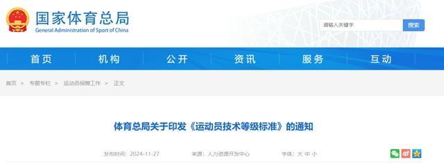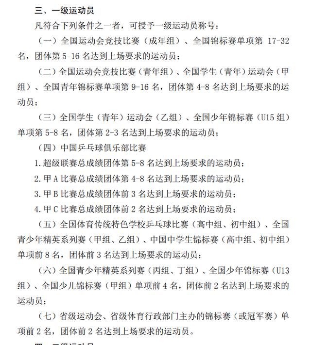 根据国家体育总局近期印发的相关通知,达到以上要求的运动员,可授予一级运动员称号。