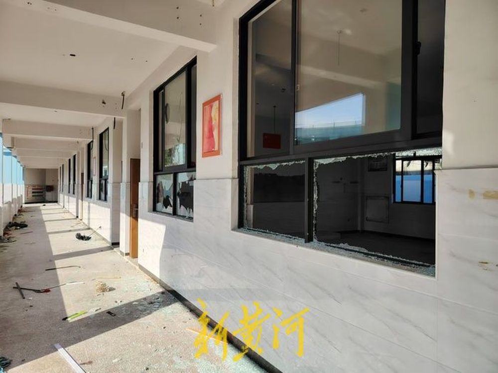 进入大门后可发现校园很小,仅有一主一副两栋简易2层教学楼,缺少其他配套场所。教学楼内一些教室的窗户玻璃已经被打破,有的连窗户框架都已消失,教学楼走廊和教室内地上到处都是学生的作业簿和粉笔、三角板等教学用品,有的教室铁门都被踹坏。学校周边的村民告诉新黄河记者,这个学校被弃用已接近半年。