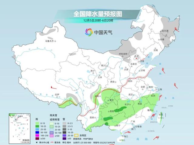 今天(12月5日),北方大部地区降水稀少,内蒙古东北部、黑龙江仍有降雪,需注意防范。明天开始,北方新一股冷空气又将上线,受其影响,周末部分地区最高气温或将创今年下半年来新低。至于南方,今明天阴雨天气持续,以小到中雨为主,体感较为湿冷。